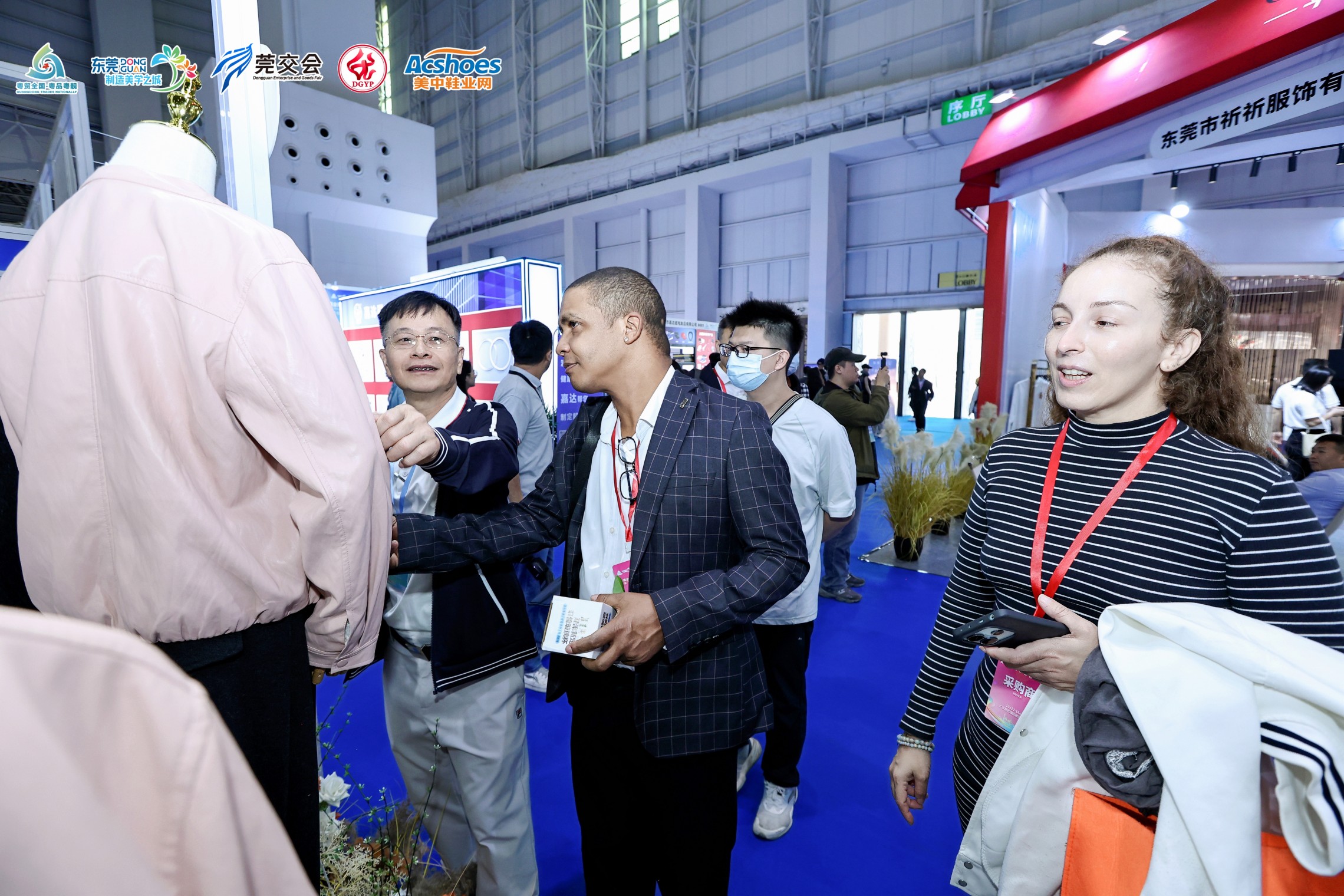 开幕式现场,省市相关部门领导、海内外采购商代表齐聚一堂,共同见证这场“全球买·东莞造”的产业盛会。东莞市贸促会副会长张军民在致辞中强调,莞交会致力于打造“东莞优品”集体名片,助力本土企业链接全球市场,这一理念与依歌服饰深耕品质、拓展市场的发展方向高度契合。